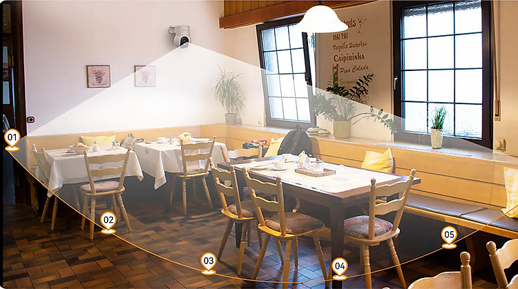 – Quay quét ngang (PAN) 355°, quay dọc lên xuống -5° ~ 50°