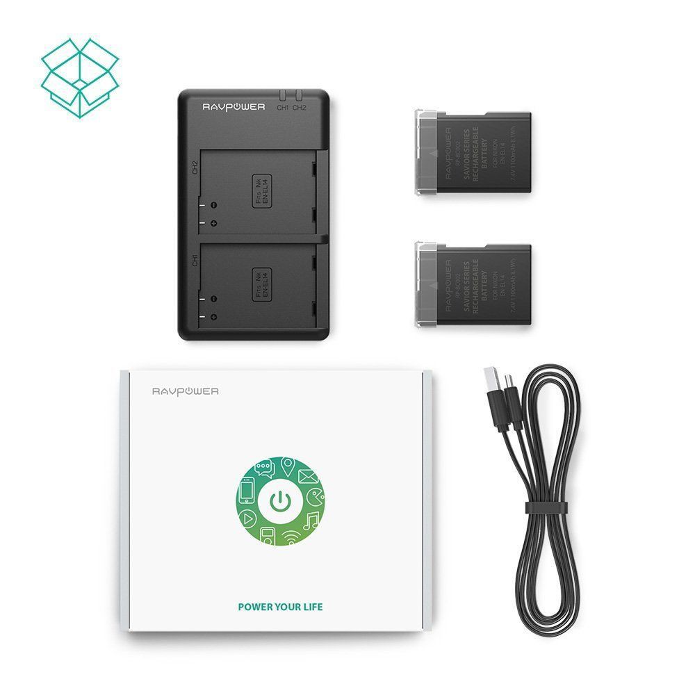 Giới thiệu Pin máy ảnh Nikon EN-EL14 chính hãng RAVPower RP-BC002, bộ 2 pin 1100 mAh